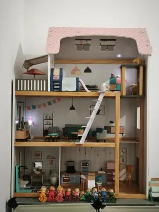 Casa de muñecas de madera grande de Lidl (Playtive), en perfecto estado, prácticamente nueva. Mide aprox. 80 cm de alto y 61 cm de ancho, ideal para jugar cómodamente. Incluye: ✔️ Muebles completos (salón, dormitorio, cocina y baño) ✔️ Escaleras y accesorios originales ✔️ Muchos muñecos extra incluidos (se ve en las fotos) Muy cuidada, sin golpes ni desperfectos. Lista para jugar sin necesidad de comprar nada más. Perfecta para regalo 🎁 💰 Precio: 70 € (negociable) Conservo cajas originales de la caja y todos los sets extras.