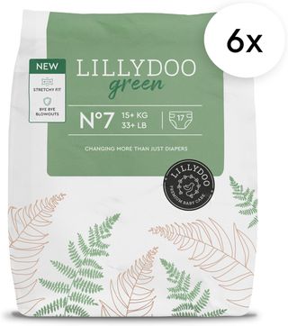 Caja de pañales LILLYDOO green, talla 7. - 102 pañales. - Talla 7 (15+ kg). - Novedad: Más eficaz.