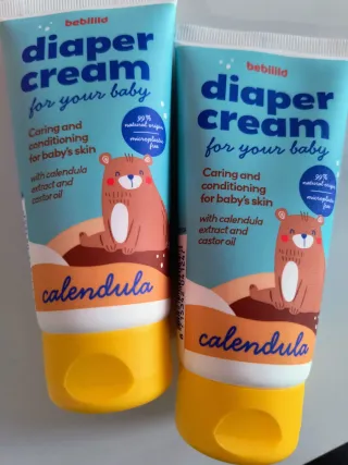 2 x 1 crema de pañal caléndula Crema ligera,rozes escoceduras rojeces etc ni aplicar en heridas ampollas..con extracto de caléndula y aceite de ricino...deja la piel sueve ,agradable y sana.. Un 99% origen natural ... Vegano Testado dermatologícamente Tamaño 75ml Nuevas sin estrenar 😃