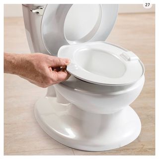Orinal para que los bebés aprendan a hacer sus cositas y empezar a no usar pañal. Cuando eso lo dominan, también sirve para que aprendan a usar el inodoro de adultos con mucha facilidad, ya que el orinal se puede poner en el inodoro proporcionandoles una escalerita para que se puedan ser tan con facilidad y un apoyo al sentarse acorde a su tamaño.