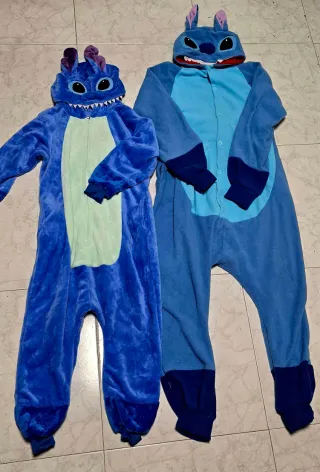 Lote de cuatro disfraces del personaje Stitch, ideales para fiestas o eventos. - Incluye cuatro unidades. - Tallas diferentes para varias edades. - Diseño inspirado en Stitch. Cuatro disfraces de Stitch, tipo pijama, con una sola puesta. Los de adulto con cierre de botones y los de los niños con cremallera. El de bebé la lleva hasta atrás para tener facilidad para el cambio de pañal. Tallas XL, L, 7-9 años 1-2 años.