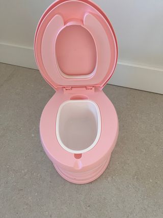 Retrete infantil usado un par de veces pero sin etiqueta ni caja. Ideal para el comienzo de eliminación del pañal. Fácil de limpiar y ligero de mover. Muy útil.
