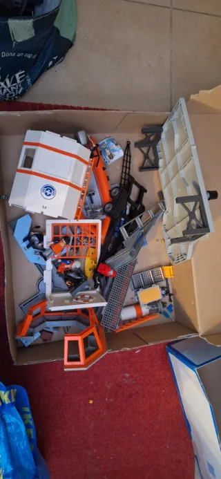 Set de Playmobil City Action, modelo 5539, que representa un equipo de salvamento marítimo, esta en perfecto estado sólo faltan algunas piezas pequeñas pero todo lo otro esta. - Incluye una lancha hinchable con motores. - Torre de vigilancia con figuras. - Accesorios para el rescate.
