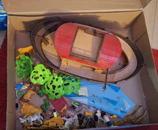 Set de Playmobil Wild Life Arca de Noé. Esta en perfecto estado, tiene poquísimo uso, viene con instrucciones y todo. - Incluye figuras de animales como jirafas, cebras, leones, avestruces y monos. - Figuras humanas y accesorios. - El arca tiene detalles de construcción y rampas.