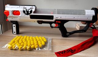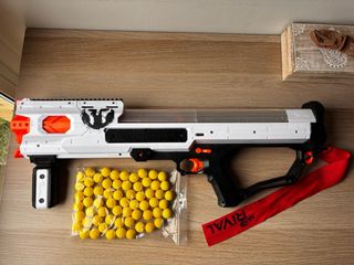 Pistola Nerf Rival en excelente estado, casi sin uso. - Incluye bolsa de munición. - Incluye cinta de advertencia NERF RIVAL.