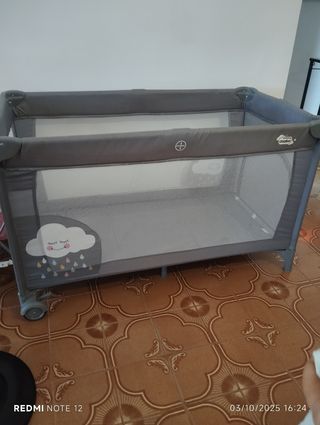 Parque cuna en perfecto estado, ideal para los más pequeños. Su diseño es alegre y funcional. - Estructura resistente y segura. - Laterales de malla transpirable. - Incluye un divertido estampado infantil con animales.
