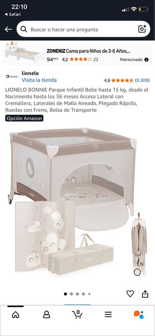 Parque cuna de la marca LIONELO, tiene un accesorio para poner al bebe mas alto, muy ligero y como nuevo