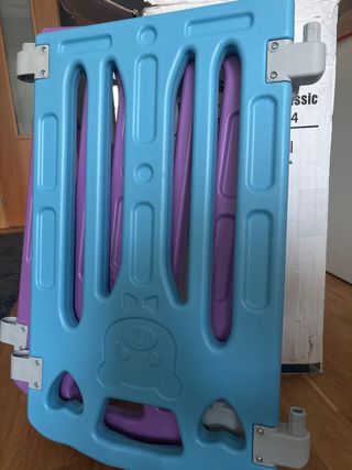 Parque infantil o corralito para bebés, ideal para crear un espacio seguro. - Diseño con estampado marino. - Paneles de malla transpirable. - Puerta de acceso con cremallera. Parque o corralito infantil, tambien válido para mascotas. Tiene una pieza adicional que es una canasta solo aparece puesta en 2 fotos , mirar todas las fotos bien. Usado pero en buen estado, facil de montar y desmontar. Medidas 1,90 cm de largo 1,30 de ancho y 0,65de alto. Tiene dos barrotes abollados, pero no afecta a la resistencia . Cualquier duda o aclaración preguntarme antes de comprar. Gracias