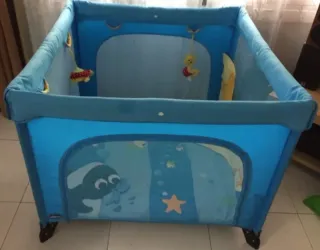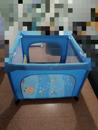 Parque infantil de la marca Chicco con un divertido diseño marino. - Laterales de malla transpirable. - Incluye asas para ayudar a levantarse. - Plegable para un fácil almacenamiento. Tiene marcas de uso en los laterales. Ver fotos