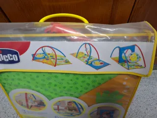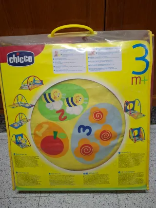Parque infantil de la marca Chicco, apto para bebés a partir de 3 meses. Presenta un diseño colorido con dibujos de abejas, flores y números. - Incluye asa para transporte. - Estructura de juego. - Diseñado para el desarrollo del bebé.