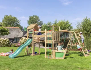 Parque infantil certificado con tobogán, rocódromo