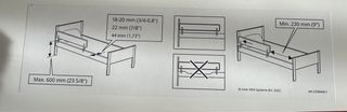 Barandilla de seguridad Ikea modelo Nattapa. Con una barandilla en el lateral de la cama, disminuirá el riesgo de que el niño se caiga de la cama. Es muy fácil de fijar y quitar, y no deja marcas en el lateral de la cama. La barandilla es compatible con cunas con un lado abierto, camas extensibles y camas convencionales para niños, para que acompañe a tu hijo durante muchos años. Para laterales de cama con 18-22 mm de grosor. Si giras los soportes, puedes fijar la barandilla a camas y camas extensibles con laterales de 44 mm de grosor. - Medidas: 96 cm de largo. - Altura de la barandilla: 15 cm. - Altura total con soportes: 26 cm.