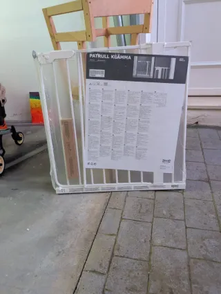Barrera de seguridad de la marca IKEA, modelo Patrull Fast. Ideal para escaleras o accesos. - Extensible de 65cm a 105 - Color blanco. - Diseño de barras verticales. - Incluye instrucciones de montaje. la compramos y finalmente tras mudarnos, no pudimos usarla