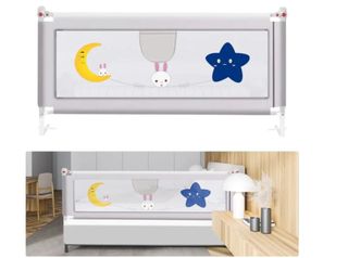 Preciosa barrera de cama para niños, ideal para proteger a los más pequeños. Está en muy buen estado y es fácil de limpiar. - Malla extraíble y lavable a máquina. - Estructura robusta y segura. - Diseño infantil con luna, conejito y estrella. - Fácil instalación.
