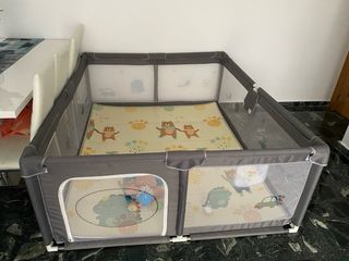 Parque infantil para bebé, ideal para jugar con seguridad. Está en muy buen estado y es fácil de plegar para guardarlo. - Plegable y fácil de guardar. - Diseño moderno y ligero. - Tejido gris de calidad.