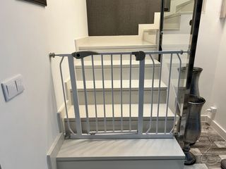 2 vallas de seguridad para niños, con sistema de seguridad para bajada de escalera y otra para subida. Las medidas son la minima, es extensible al tamaño que uno quiera