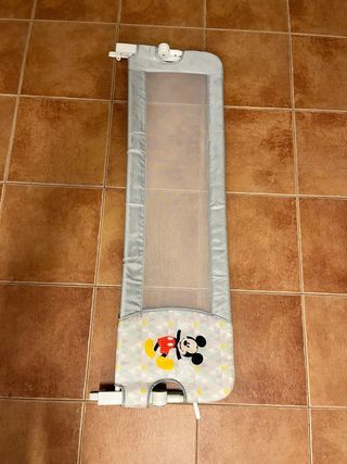 Barrera de seguridad para cama infantil con diseño de Mickey Mouse. - Estructura de tela y metal. - Estampado de Mickey Mouse y figuras geométricas.