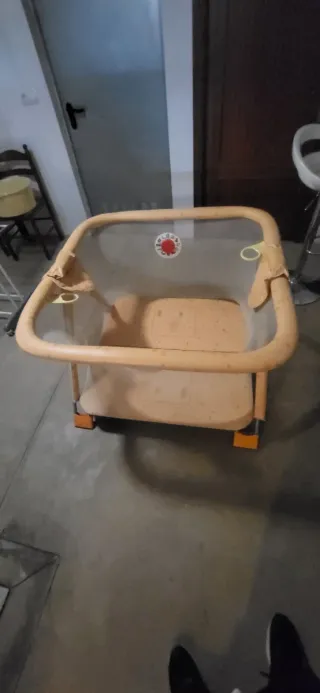 Parque infantil de color naranja, ideal para que los más pequeños jueguen y descansen de forma segura. Fácil de montar y desmontar. -78 cm de alto, 77 de ancho y 113 de largo. - Estructura resistente. - Laterales de malla transpirable. - Base acolchada.