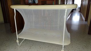 Parque infantil de red, ideal para que los más pequeños jueguen de forma segura. Es cómodo y fácil de montar. - Medidas: 105x80x80cm. - Color: Blanco. - Fabricado en España. Con muy poco uso. Entrega en persona a ser posible .
