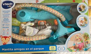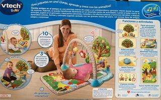 Preciosa manta de juegos VTech para bebés, ideal para estimular la motricidad y los sentidos. Se transforma fácilmente en gimnasio infantil. Incluye panel de actividades con luces, sonidos y 4 piezas móviles. ¡Perfecto estado! VENTA EN PERSONA.