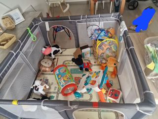 Parque infantil plegable, ideal para que los más pequeños jueguen con seguridad. Está en muy buen estado y es fácil de montar y desmontar. Medidas 120x120 - Plegable para facilitar almacenamiento. - Diseño ligero y portátil. - Material resistente y duradero. - Incluye una práctica bolsa de transporte. - Tiene dos puertas de entrada y salida - Incluye alfombra de juego para el suelo del parque - Incluye agarraderas. - Incluye un bolsillo esterior