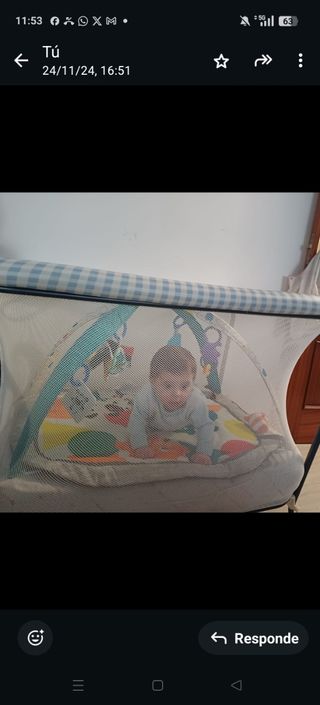 precioso y genial para dejar al bebé jugando y aprovechar para hacer cosas mientras está seguro.se pliega.apoyaderos para agarrarse si se pone depies o colgar juguetes.juguetes no incluidos(red con alguna marca, habría k limpiar).mas cosas en mi perfil.