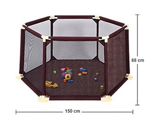 Parque infantil de plástico resistente, ideal para que los más pequeños jueguen de forma segura. - Paneles de juego con actividades. - Color beige y marrón. - Fácil de montar y desmontar. Dimension mínima 114x114 máxima 114x190