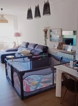 Costó 80€ pero lo pongo a la mitad porque una de las barras está doblada al haberse sentado un adulto. La solía poner en el lado que da a la pared. Se venden también las 4 agarraderas para ponerse de pie. Parque infantil de gran tamaño, ideal para que los más pequeños jueguen de forma segura. - Medidas: 150 x 180 cm. - Estructura resistente y segura. - Fácil de montar y desmontar.