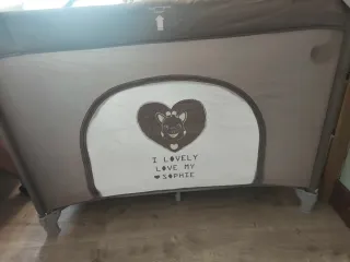 Cuna de viaje y parque infantil marca SOFI. Es un espacio seguro y cómodo para el bebé. - Estructura de madera y tela. - Laterales de malla transpirable. - 2 alturas - Sirve como cuna y parque