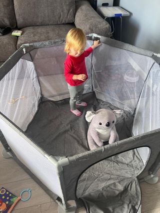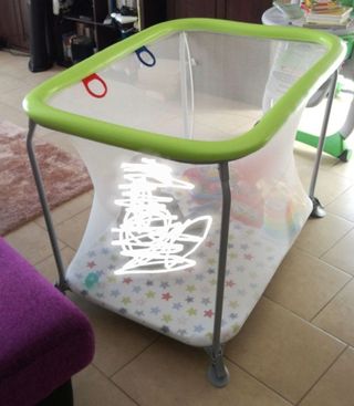 El mejor parque infantil que existe!!! fácil de plegar, es muy colorido y encanta a todos los bebés - está en estado perfecto intocable! con la compra - regalo una bolsa de juguetes primero que es grande que no se siente el bebé como en una jaula, es estable: el bebé puede estar de pie cómodo y no se va a volcar como los parques flojos de los que venden ahora, la mejor calidad que he visto - el precio original fue 170£ una marca de maravilla italiana, recomiendo 100%! ayuda bastante para hacer tareas de casa y cocinar