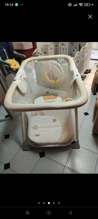 Parque con colchón y bolsa de transporte sin uso. La vendo porque al bebé no le gusta quedarse dentro. Y tiene cremallera y entrada al parque lateral.