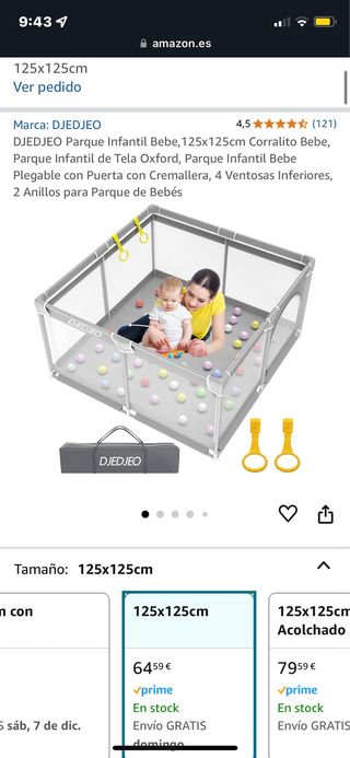 parque infantil 125x125 valorado en 64,59 en amazon, se vende porque alfinal no se le dio uso, solo un par de dias y lo guardamos. no tiene acolchado en el suelo ni pelotas.