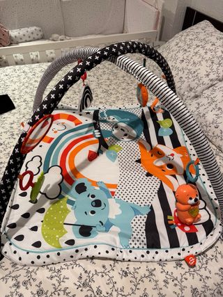 Este parque infantil es perfecto para el entretenimiento y desarrollo de los más pequeños. Su diseño colorido y sus elementos colgantes estimulan la curiosidad. - Incluye arco de juegos con varios juguetes colgantes. - Tapete acolchado con divertidos estampados de animales y arcoíris. - Estructura plegable para facilitar su almacenamiento y transporte.