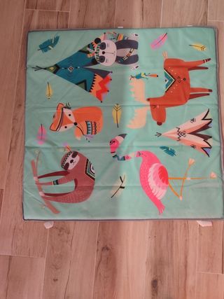 Preciosa colchoneta de actividades para bebés y niños pequeños. Está en muy buen estado y lista para usar. 90x90 - Diseño con animales y tipis. - Suave y acolchada para mayor comodidad. - Fácil de limpiar. - Perfecta para jugar y gatear. - Ideal para parques donde se requiere firmeza pero acolchado a la vez