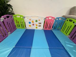 Este parque infantil es perfecto para que los más pequeños jueguen de forma segura. Sus paneles de colores vivos y diseño divertido lo hacen ideal para cualquier hogar. - Paneles de plástico resistente y duradero. - Diseño con figuras de animales y formas. - Fácil de montar y desmontar. - Base acolchada para mayor comodidad. El parque tiene 14 piezas más cuatro más que le compramos, no incluye las colchonetas.