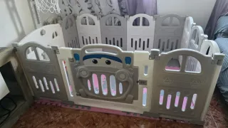 Parque de juegos seguro y espacioso para bebés y niños pequeños. Ideal para crear un área de juego protegida en casa. - Paneles de plástico resistentes y duraderos. - Diseño con bordes redondeados para mayor seguridad. - Fácil de montar y desmontar.