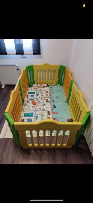 Parque infantil bebé grande para jugar y que esté seguro,tiene puerta para poder salir y entrar cuando lo desee.Esta en muy buenas condiciones.