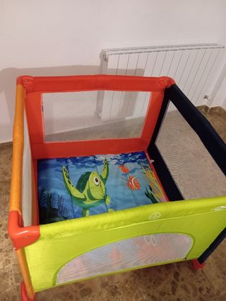 Preciosa cuna de viaje infantil, ideal para llevar de vacaciones o a casa de los abuelos. Se encuentra en buen estado, lista para usar. - Plegable y fácil de transportar. - Diseño alegre y colorido con animales. - Incluye colchón.
