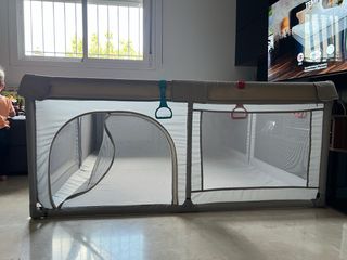 Parque infantil de malla con estructura plegable. Diseño ligero y fácil de transportar. Ideal para bebés y niños pequeños. Casi sin uso porque mi bebé no lo quería. En tienda fueron mas de 100€.