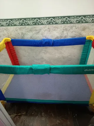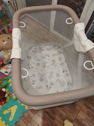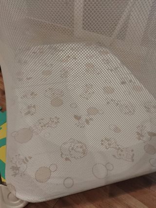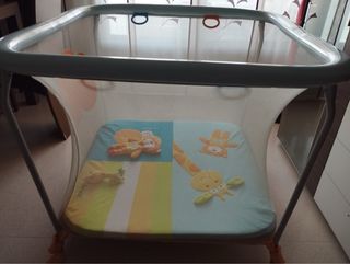 parque cuna en perfectas condiciones,con su caja original. tiene doble altura, cambiador (le falta un tornillo que sirve para poco) no repercute en nada yo lo he usado así, bolsillo lateral, trae para que el bebé pueda salir y entrar del parque cuando quiera con una cremallera que tiene en el otro lateral.
