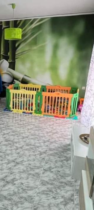 Parque infantil con juegos y colchon. En buen estado de uso.