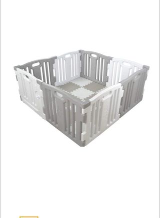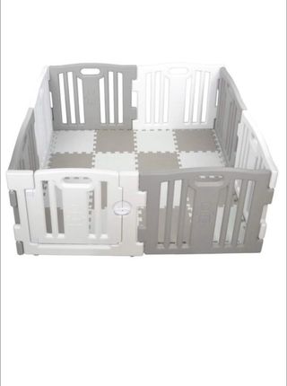 En buen estado, bien conservado Fácil montaje, con puerta y cierre de puerta exterior, resistente Tiene 12 piezas estrechas de 38cm de ancho y 2 partes anchas de 76cm de ancho. 1,5mts ancho x 1,5mts largo Es amplio como zona de juegos infantil y seguridad para bebes Su valor nuevo es 110€