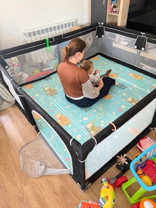 Preciosa área de juegos para bebés Dripex, en buen estado. - Medidas: 150x150cm. - Diseño colorido y alegre, con motivos infantiles. - Incluye panel de actividades. - Material anti-deslizante para mayor seguridad. - Fácil de montar y desmontar. precio de amazon 129€