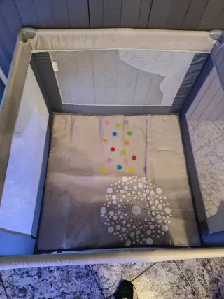 Preciosa parque infantil plegable, ideal para que los más pequeños jueguen con seguridad. - Estructura ligera y fácil de montar y desmontar. - Tejido gris de textura suave. - Incluye una práctica bolsa de transporte (no incluida en la imagen). - Perfecto estado.