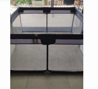 Parque-cuna en muy buen estado, no tienen roturas, se monta y desmonta perfectamente. Se ha usado muy poco y se puede doblar y transportar sin ocupar casi espacio, es la cuna de viaje que se usa también de parque con los juguetes. Se encuentra en Puigcerdá (Gerona). Precio no negociable.