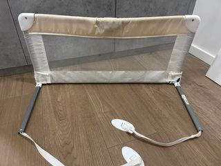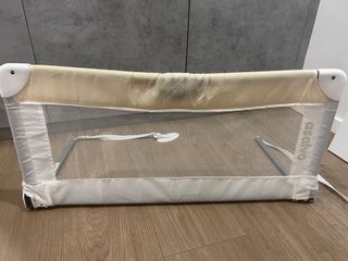 Barandilla de seguridad para cama infantil. SOLO ENTREGA EN MANO, NO PESA PERO ES INCÓMODO PARA EMBALARLO. - Color beige y blanco. - Malla transpirable. - Marca Asalvo. - 88cm largo y 42cm alto