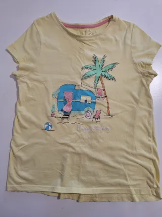 Preciosa camiseta para niña de 12 años. Es de color amarillo claro. - Talla 12 años. - Estampado de caravana, palmera y playa. En buen estado. Entregas en varias zonas: MÓSTOLES, Centro comercial XANADÚ y Parque del Oeste de (ALCORCÓN). Hago envíos por Wallapop. MAS ARTÍCULOS EN MI PERFIL...