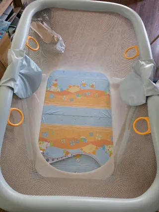 Alegre cuna de viaje/parque infantil marca tuc tuc con dos alturas,para cuando son muy bebes no tengas que agacharte tanto,tiene tambien mosquitera,es de casa de los abuelos poco uso Tiene bolsa para guardarla,ocupa muy poco espacio Con colchon nuevo y bueno 40€ todo Fotos del colchón en mi perfil