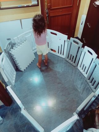Parque infantil grande con alfombra de chan. - Dimensións: 150 x 200 cm. Novo custa máis de 100 €. - Inclúe alfombra reversible. Novo custa máis de 40 €. - Deseño gris con paneis de malla. - Inclúe 5 ganchos para colgar artigos. Pódese vender por separado. ---------------------------------- Parque infantil de gran tamaño con colchoneta para el suelo. - Medidas: 150 x 200 cm. Nuevo cuesta más de 100 € - Incluye colchoneta reversible. Nueva cuesta más de 40 € - Diseño en color gris con paneles de malla. - Incluye 5 ganchos para colgar cosas. Podrían venderse por separado.
