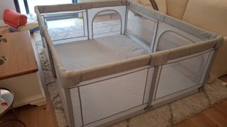 Parque de juegos extra grande 200x180 (medidas exactas en la segunda foto). - De muy fácil montaje y transporte. - Contiene todos los embalajes originales y las instrucciones. - Todavía en garantía (hasta el 10/12/2027). - Ventosas en el suelo para mayor agarre. - Malla transpirable con ventilación adecuada. - Dos gateras para entrar y salir con cierre de cremallera. - Una red de alacenaje extra.